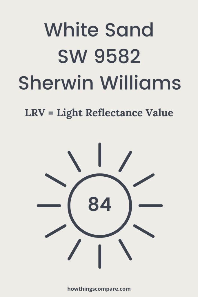White Sand has an LRV of 84, meaning it reflects 84% of the light that hits it — a very high score that puts it firmly in near-white territory. It bounces light generously around a room, keeping spaces feeling bright, open, and airy while its warm sandy undertone stops it from feeling stark or cold.