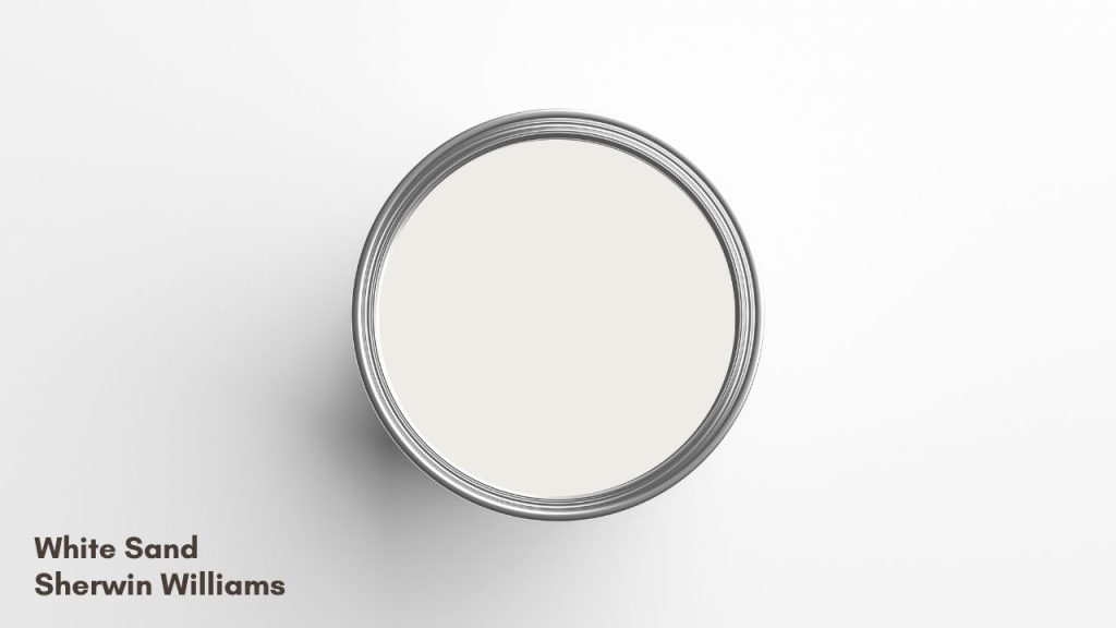 White Sand by Sherwin-Williams is a warm, barely-there neutral that walks the line between a soft white and a delicate beige — a natural fit for bathrooms where a clean, calm atmosphere is the goal. Its high LRV means it reflects a generous amount of light, making it a smart choice for smaller or lower-light bathrooms where you want the space to feel open and airy without going stark white.