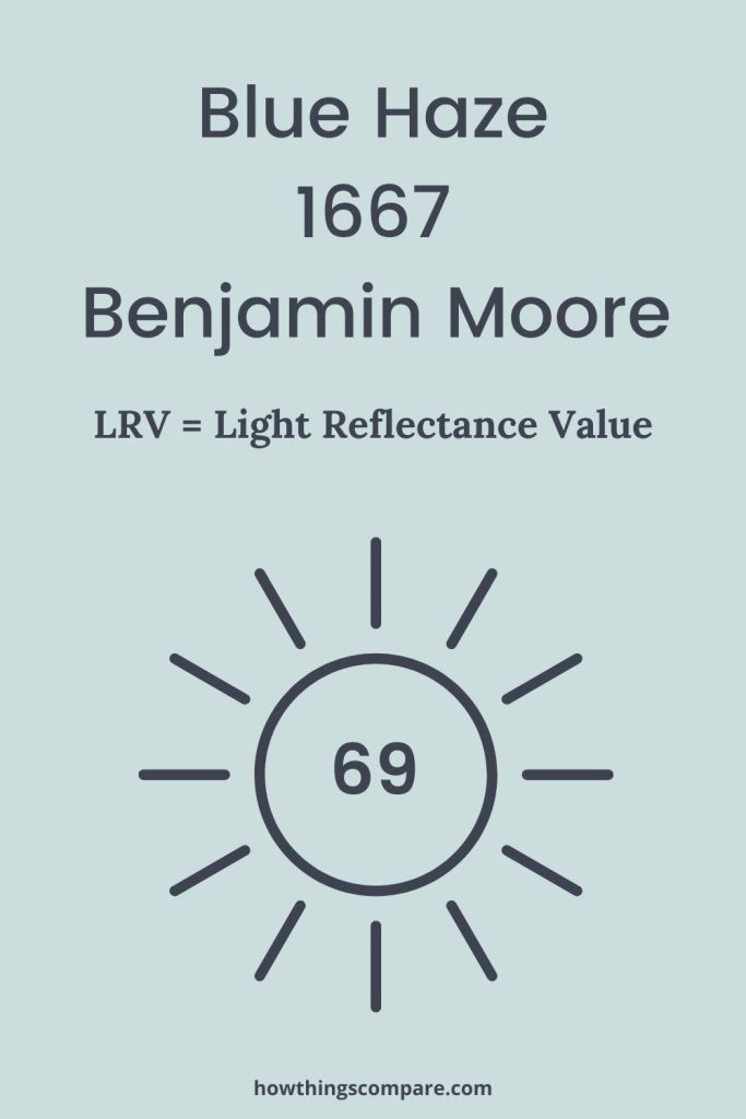 Blue Haze has a Light Reflectance Value (LRV) of 69, meaning it reflects 69% of the light that hits it. One of the highest on this list, which is a big part of why it works so well in smaller spaces where every bit of reflected light makes a difference.