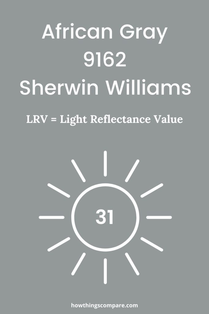 African Gray has a Light Reflectance Value (LRV) of 31, meaning it reflects 31% of the light that hits it. It’s on the lower end of the scale, which is worth being honest about for a small bedroom. At this LRV the color is absorbing more light than it reflects, so going in with eyes open about lighting is important.