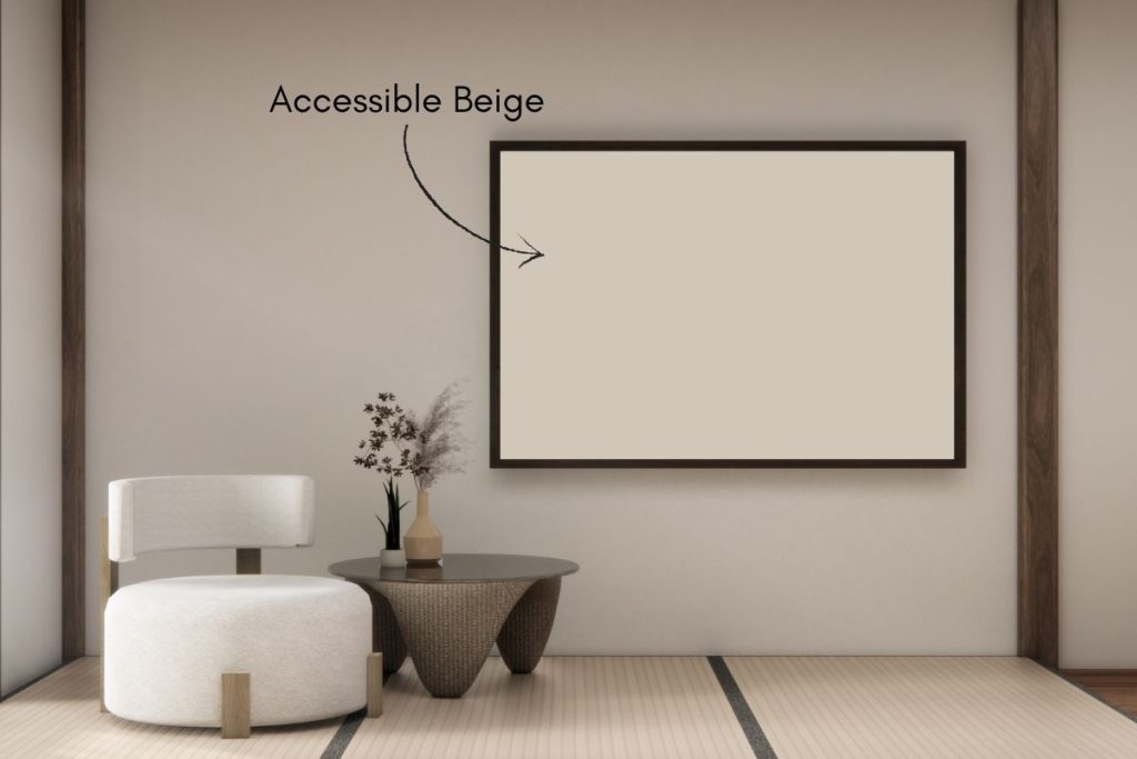 Accessible Beige has a hue value of 36°, which places it in the warm color family. This means it has a soft, subtle orange influence that gives it a gentle warmth without feeling too bold or overpowering.