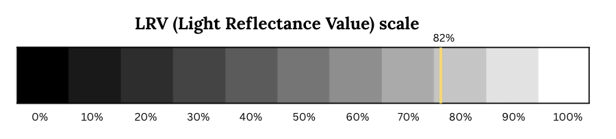 Light Reflectance Value (LRV) is a measurement, expressed as a percentage from 0 to 100, that indicates how much light a color reflects. An LRV of 0 means the color absorbs all light (pure black), while an LRV of 100 means the color reflects all light (pure white).