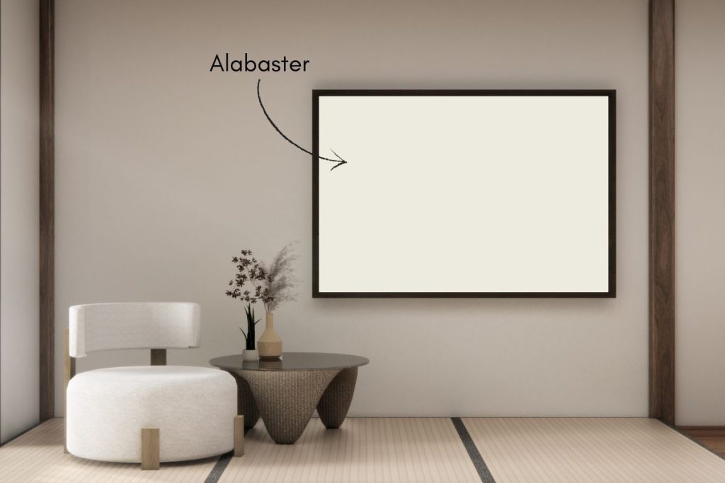 In bright rooms, Alabaster can appear even lighter and more crisp, while in darker spaces, it maintains a soft, welcoming glow. Its versatility makes it a great choice for a variety of rooms and lighting conditions, whether you’re aiming for a bright, open look or a soft, comforting atmosphere.