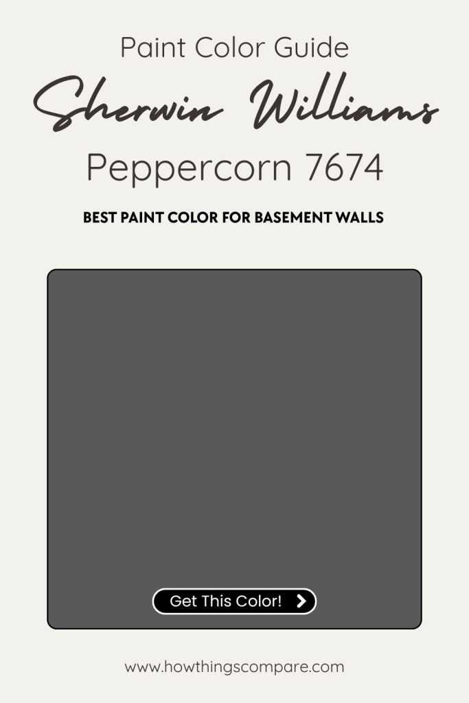 Peppercorn is my go-to for basements designed around atmosphere. It has a deep charcoal tone with an LRV of just 10. This color creates a cozy, moody depth perfect for movie rooms and dens, while its lack of strong undertones keeps it from feeling cold or flat under artificial light. It also works exceptionally well as an accent wall or on cabinetry for a high-end, modern finish.