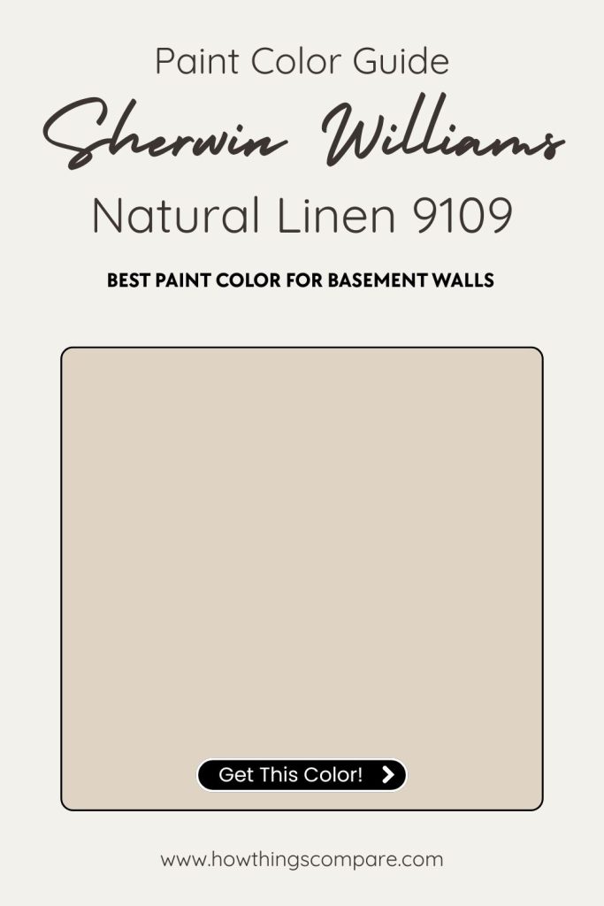 Natural Linen is a warm, sandy off-white with an LRV of around 66, making it one of the better light-reflecting options for below-grade spaces. Its soft beige undertones prevent it from reading stark or clinical under artificial lighting, and its natural compatibility with wood tones and warm fixtures makes it an easy choice for finished basement living spaces, home offices, or guest rooms.