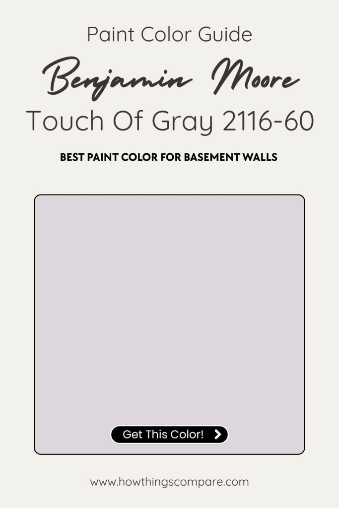 Touch of Gray is a light-to-mid-tone neutral with subtle lavender-violet undertones that give it a quiet sophistication most standard grays can’t match. Touch Of Gray has those soft violet notes making it particularly well-suited to basements.