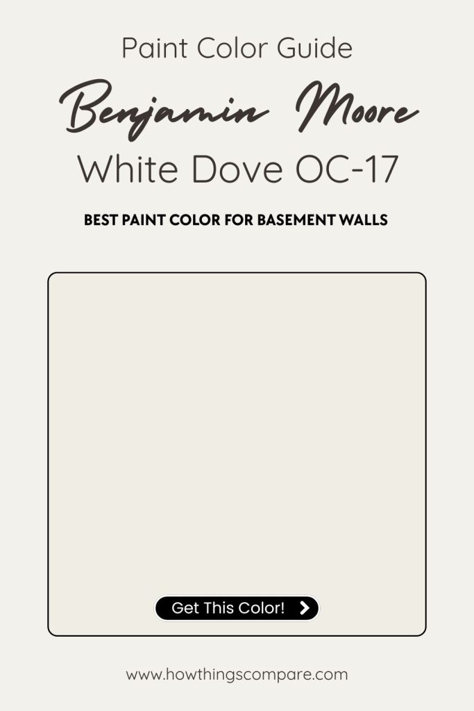 White Dove is a soft, warm white with gentle yellow-cream undertones that make it one of the best bright options for basement walls. With an LRV of 83, it reflects a significant amount of light which is a major advantage below grade. It’s warmth keeps it from reading cold or clinical the way a stark, bright white would under artificial lighting.