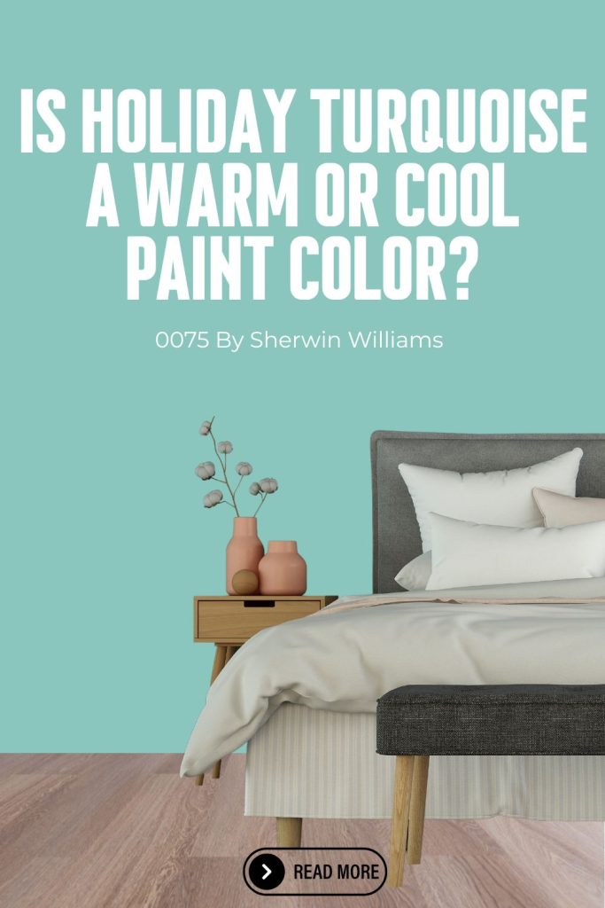 Holiday Turquoise (SW 0075) by Sherwin-Williams is a cool color. Like most turquoise shades, it sits in the blue-green family on the color wheel, placing it firmly in the cool spectrum.
