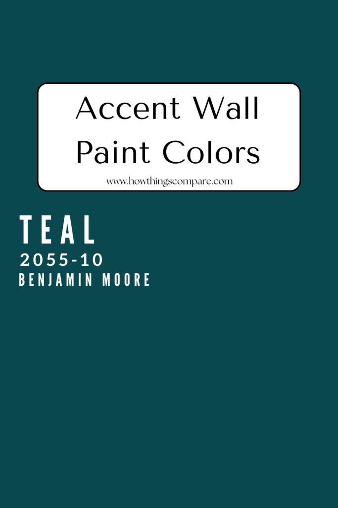 Benjamin Moore’s Teal is a rich, deep shade that combines blue and green tones to create a sophisticated and vibrant look. Teal is versatile and can be used in various design styles, from modern to traditional.